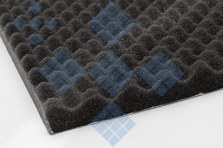 Hullámmintás, nyíltcellás PU habszivacs hangelnyelő lap. Széles hőmérséklet-tartományban felhasználható, jó hidrolízis tűrési képességű, flexibilis, UV sugárzásnak kismértékben ellenálló, öntapadó kivitelben gyártott, jó hangelnyelő tulajdonságokkal rendelkező lap.